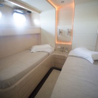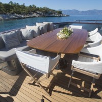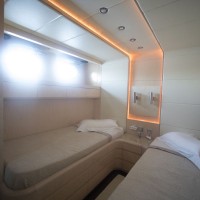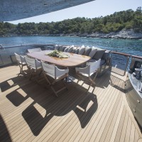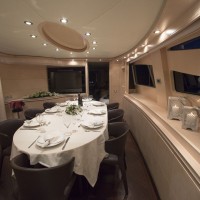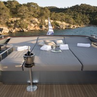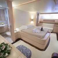 PRINCESS L interior layout sleeps up to 12 guests in 5 rooms, including a master suite, 1 VIP stateroom, 1 double cabin and 2 twin cabins. She is also capable of carrying up to 6 crew onboard to ensure a relaxed yacht experience. Timeless styling, beautiful furnishings and sumptuous seating feature throughout to create an elegant and comfortable atmosphere. PRINCESS L’s impressive leisure and entertainment facilities make her the ideal charter yacht for socializing and entertaining with family and friends.